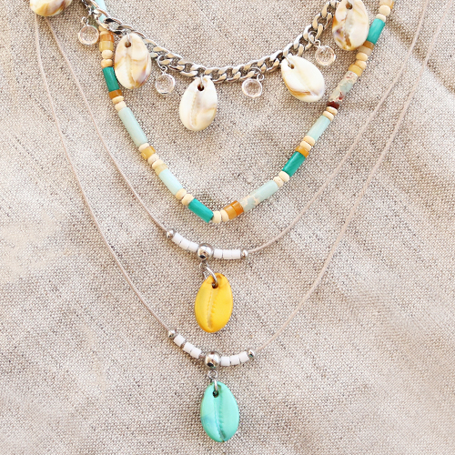 Grazie alle nuovissime conchiglie cipree in resina non ti serve molto per creare dei gioielli meravigliosi. Per creare degli orecchini puoi utilizzare dei componenti oppure puoi scegliere degli orecchini creoli. Grazie agli anellini puoi aggiungere le conchiglie e gli altri ciondoli agli orecchini. Le possibilità per creare delle collanine sono infinite. Grazie alle catenine puoi creare delle bellissime collane e appenderci le conchiglie cipree in resina. Ti piacciono i look da spiaggia? Infila le perline Miyuki o di pietra naturale sul filo macramè con una conchiglia ciprea in resina e stringi un nodo scorsoio all’estremità. Alle estremità della collana puoi appendere anche un bel ciondolo oppure una perlina. Vuoi creare un set completo? Infila sull’elastico una serie di perline in pietra naturale di colori coordinati.