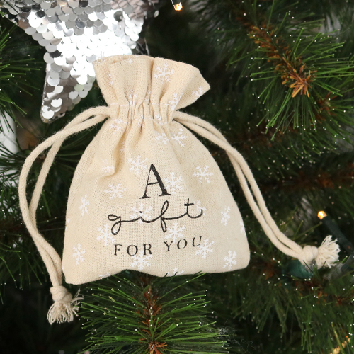 • Sacchetto in lino ‘a gift for you’ biancastro