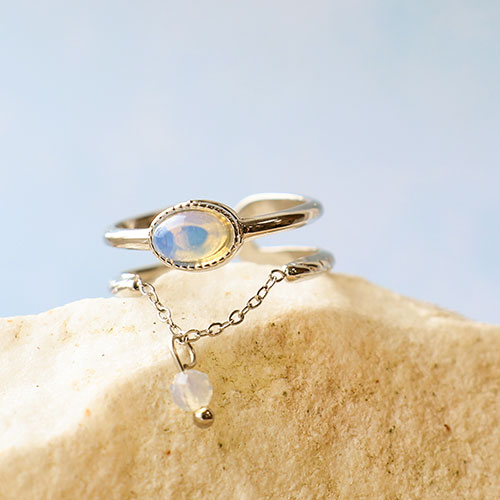 Anelli in acciaio inossidabile con pietra naturale oro-bianco latte