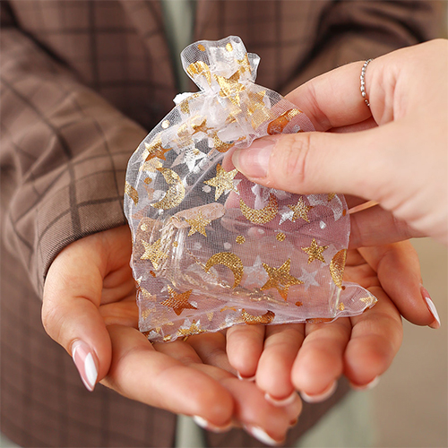 Questi pratici sacchetti in organza per gioielli nei colori invernali sono davvero imperdibili per la tua collezione autunnale! Puoi scegliere sacchetti di diversi colori con lune, stelle o fiori per sorprendere i tuoi clienti con gioielli confezionati a festa.
