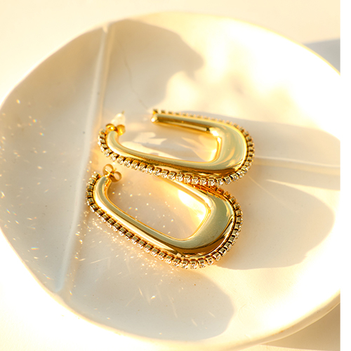 • Orecchini in acciaio inossidabil a cerchio ovale oro