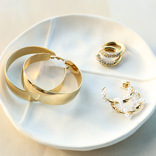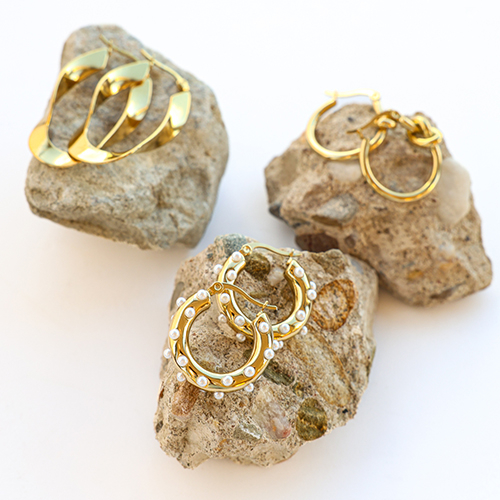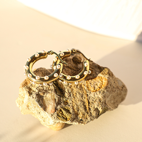 • Orecchini in acciaio inossidabil a cerchio con imitazione di perle oro