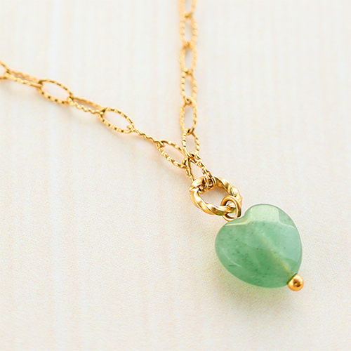 Perline in pietra naturale Quarzo latteo cuore verde