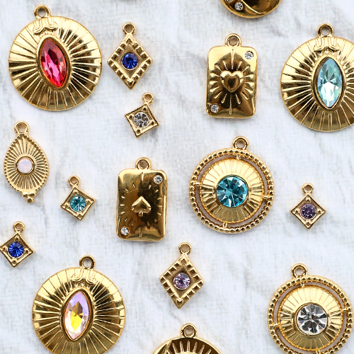 BY31® Ciondoli in acciaio inossidabile tonda oro-cristallo
