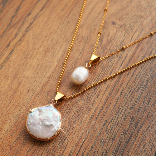 BQ Perle di acqua dolce ciondolo irregolare oro-bianco naturale