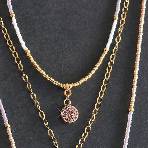 Quando creai bigiotteria con i bellissimi nuovi ciondoli in pietra naturale, il successo è garantito. Questi bellissimi ciondoli possono far brillare ogni bijoux. Abbiamo scelto di creare vari bijoux e quindi è bello vedere che, abbinando i ciondoli con catena a rolò, perline sfaccettate o perline di metallo DQ, ottieni sempre un effetto unico. I ciondoli colorati danno un tocco esclusivo ad ogni bijoux.