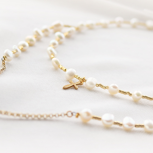 Crea bigiotteria davvero speciale per i momenti speciali da festeggiare o da ricordare! Aggiungendo simboli religiosi ai tuoi bijoux crei sempre una creazione unica per, ad esempio, battesimo, prima comunione, cresima o matrimonio! Per ispirazione abbiamo creato un bellissimo set di bijoux. I ciondoli di metallo di qualità designer nel color oro danno un effetto fantastico in combinazione con le perle d'acqua dolce. Con questi componenti puoi anche creare bellissimi bracciali e collane in stile rosario con ciondoli religiosi.