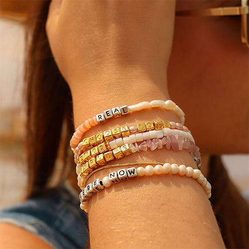 Questa nuova collezione di perline alfabeto di metallo DQ è disponibile in tutte le lettere dell'alfabeto e i numeri da 1 a 9. Combina con dischi di conchiglia, perle ed elastico per bracciali neutri, da spiaggia o eleganti. Personalizza la tua collezione di gioielli e fai una dichiarazione con queste perline!