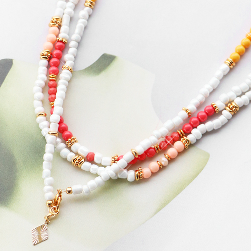 Creare bigiotteria con perline di vetro è sempre una buona idea! Con la nuova collezione di perline di vetro abbiamo creato collane e braccialetti alla moda che si abbinano perfettamente insieme. Le perline di vetro di questo bijoux sono abbinate con le nostre perline sfaccettate preferite, perline rocailles e perline di metallo DQ. Questo mix di perline gli conferisce immediatamente un aspetto giocoso. Infine, puoi appendere un ciondolo alla chiusura, ad esempio dalla collezione di metallo TQ in ottone. Un modo semplice per dare ai tuoi bijoux quel qualcosa in più. Buon divertimento!