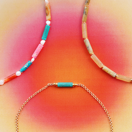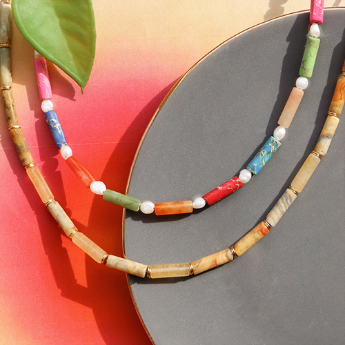 Queste perline in pietra naturale sono perfette da abbinare a vari tipi di collane. Ad esempio, puoi creare una collana di fili metallici colorati, alternando perline in pietra naturale e perle. Oppure realizzare una collana composta per metà da catene a rolò e per metà da perline in pietra naturale. Puoi creare orecchini fissando le perline tubo con un chiodino e una catena a rolò a un bellissimo orecchino di perla.