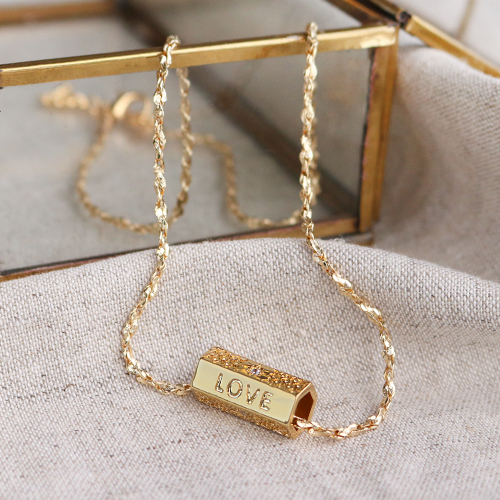 Le popolari message beads esagonali sono un piacere da guardare e da utilizzare. Usale in collane e bracciali, come perline, distanziatori o ciondoli. Puoi anche utilizzarle per creare orecchini unici. Il grande foro è utile quando si impiegano diversi materiali infilaperle. Con il materiale infilaperle sottile, puoi aggiungere una parte terminale per una bella finitura. Abbina le message beads C.U.S® per gioielli a catene a rolò, C.U.S® nastro di gioielli, perline in pietra naturale o perline sfaccettate.