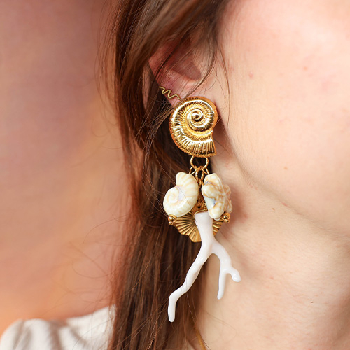 Componenti in acciaio inossidabile orecchini conchiglia con anellino oro