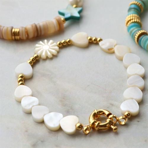 • Perline di conchiglia cuore bianco