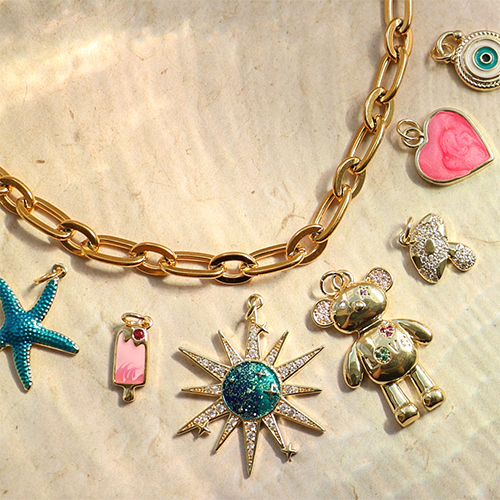 Metallo TQ in ottone ciondolo stella marina oro-turchese blu
