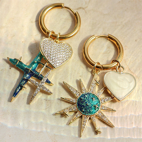 • Metallo TQ in ottone ciondolo zirconia stella oro-verde acqua scuro-blu