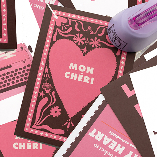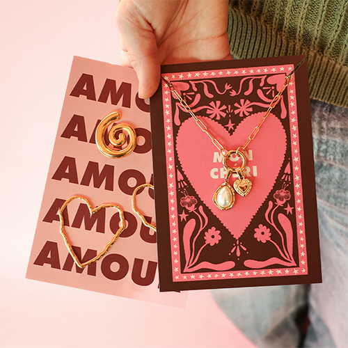 BY31® Espositori bigiotteria in cartoncino "Amour" rosa-bordeaux