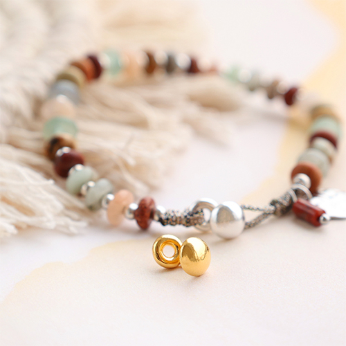 Utilizza questi componenti per realizzare gioielli che si adattino a uno stile naturale e tribale. Scegli un nastro elastico Ibiza che si abbini bene ai passanti di questa collezione e completa i bracciali con una chiusura con perline scorrevole DQ. Oppure infila un bracciale su una coda di topo in metallo e scegli vari colori di perline in pietra naturale da alternare a perline in metallo DQ. La spilla di sicurezza DQ può essere inserita come elemento distintivo in una catena a rolò.