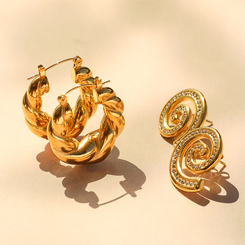 • Orecchini in acciaio inossidabil a cerchio spirale oro