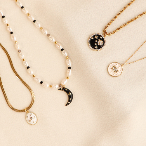 Metallo TQ in ottone ciondolo luna smalto Oro-bianco