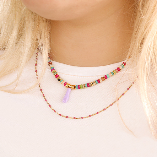 • Componenti in acciaio inossidabile 1mm catena stile rosario rosa magenta-oro