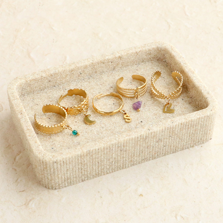 Cerchi anelli unici per la tua collezione di gioielli? Dai un'occhiata a questa nuova gamma di anelli in acciaio inossidabile con occhiello. La serie è composta da diversi anelli nei colori oro e argento. Puoi fissare una bella perlina o un ciondolo all'occhiello e il tuo anello è pronto!