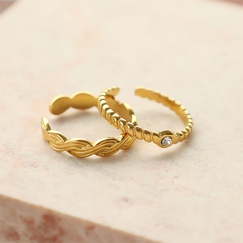 Questa pratica gamma di anelli in acciaio inossidabile è composta da anelli con disegni diversi, come un fiore e un cuore. Tutti gli anelli sono disponibili in oro e argento e sono regolabili. Una serie bellissima da aggiungere alla tua collezione di gioielli!
