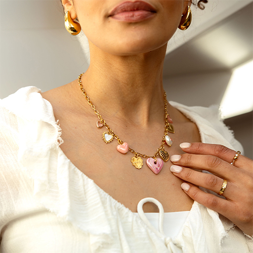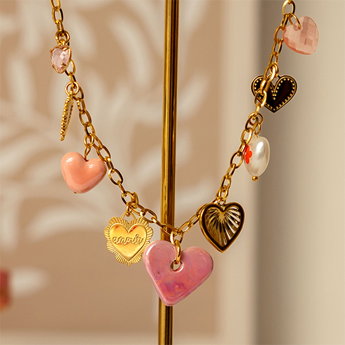 • Pendenti di vetro Crystal Glass a forma di cuore rosa chiaro-oro