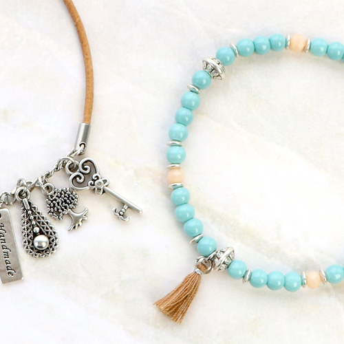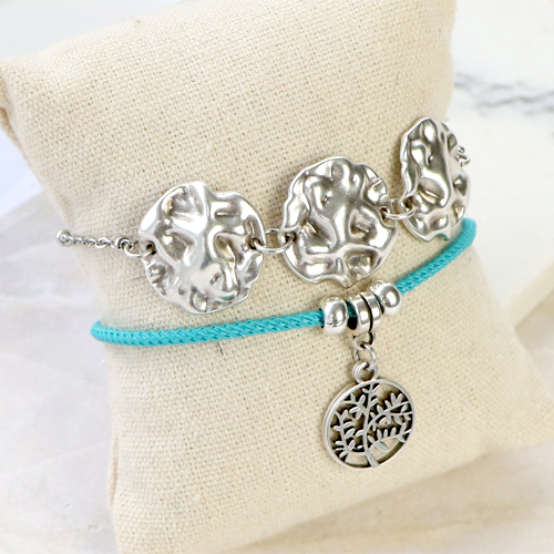 Con metallo DQ puoi creare vari tipi di bijoux. Crea facilmente un bel braccialetto infilando perline di vetro o perline in pietra naturale su filo elastico e abbinandole con le perline di metallo DQ. Puoi anche far scorrere le perline di metallo DQ su cordoncino o pelle alla moda. Chiudi il braccialetto con una chiusura magnetica e il tuo braccialetto alla moda è pronto! Un altro consiglio è quello di abbinare la nostra pelle da 2mm con un distanziatore di catena a rolò. Per completare la tua creazione, appendi i tuoi ciondoli di metallo DQ preferiti sulla catena a rolò. Buon divertimento!