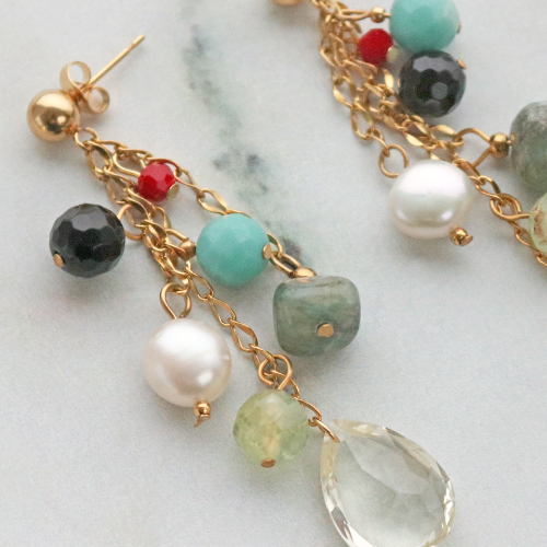 Questa volta ci siamo messi alla prova con vari tipi di perline, perché abbinandone diversi tipi e dimensioni otterrai gioielli fantastici e divertenti. Ad esempio, potresti realizzare una collana o un braccialetto con 7 fili infilaperle Beadalon da 0,38mm. Scegli tipologie diverse come le perle d’acqua dolce, le perline sfaccettate o in pietra naturale e infilale sul filo nell’ordine che preferisci. Chiudi il bracciale o la collana utilizzando una chiusura per bigiotteria e degli schiaccini. Vorresti realizzare degli orecchini abbinabili? Allora puoi creare più strati di catena a rolò per poi fissarli ai componenti per orecchini. Il risultato sarà eccezionale! Prendi le perline che vuoi utilizzare e infilale una dopo l’altra su un chiodino a pallina per realizzare un ciondolo. Fissalo alla catena a rolò ed ecco che i tuoi orecchini unici e speciali sono pronti!