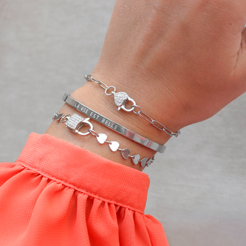 Bracciali in acciaio inossidabile con scritta 'la vie est belle' argento