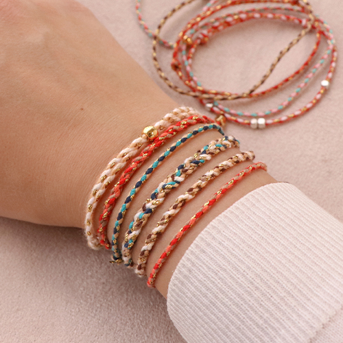 • Cordoncino intrecciato alla moda 2mm oro-arancio rosso bianco