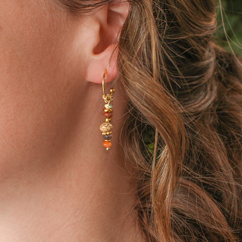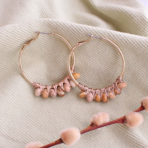 Cerchi ispirazione per la tua nuova collezione di orecchini? Allora mettiti all’opera con queste perline di pietra naturale. Ad esempio, scegli orecchini a cerchio, infila le perline a rondella sull’artistic wire e avvolgi il tutto intorno alla creola, così che una perlina alla volta arrivi all’esterno. Puoi anche sagomare il filo metallico e infilare una combinazione di perline su di esso. Crea un occhiello nell'estremità superiore da fissare ad un componente dell'orecchino. Puoi anche creare orecchini ear cuff con del filo metallico e avvolgervi intorno delle perline di pietra naturale a rondella usando l’artistic wire o del filo a coda di topo dorato.