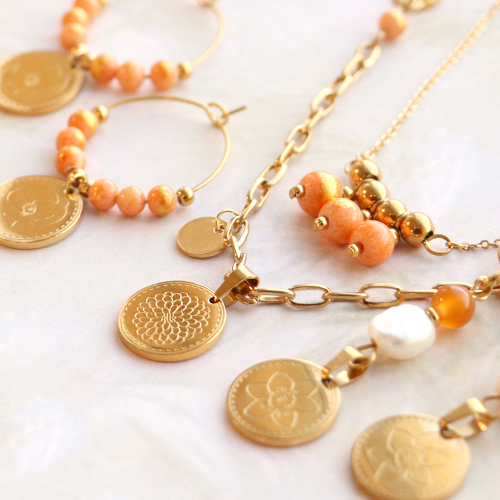 La richiestissima collezione fiori di nascita non può senz’altro mancare nel tuo assortimento di gioielli! Realizza, ad esempio, collane con catena a rolò in acciaio inox. Utilizzando catene a rolò di diverso tipo, ossia a maglie grosse e sottili, otterrai un bel risultato variegato. Puoi decorare la catena a rolò inserendo o appendendo ciondoli in acciaio inox oppure meravigliose perline in pietra naturale. Ovviamente, puoi appendere a una delle collane anche un ciondolo fiori di nascita per attirare l’attenzione. Vuoi creare un set? Potresti pensare di realizzare degli orecchini. Puoi infilare il ciondolo a un creolo insieme alle perline in acciaio inox e in pietra naturale. In alternativa, realizza un distanziatore di perle d’acqua dolce e perline di giada utilizzando un chiodino a occhiello e poi appendi il ciondolo fiori di nascita nella parte inferiore.