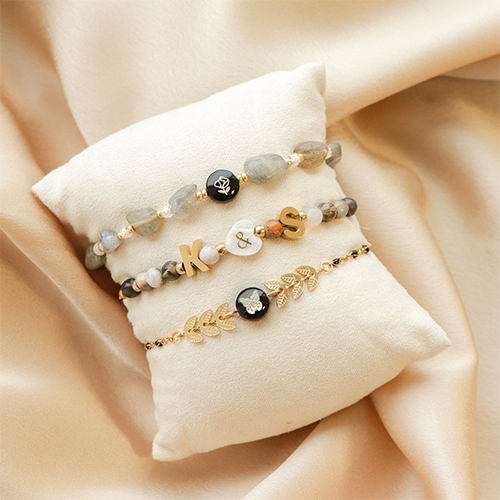Perline in acciaio inossidabile con disegno lettera K oro