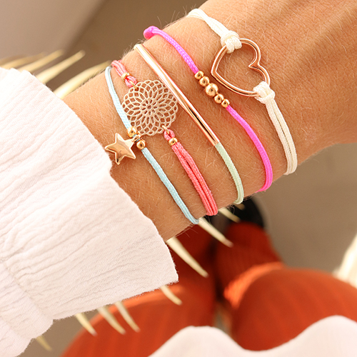 Creare dei braccialetti con il cordoncino coda di topo è davvero divertente! Per di più, sono fantastici per i look dell’estate! Con i colori vivaci del cordoncino coda di topo, le perline di metallo DQ super trendy, i ciondoli e gli altri elementi, il match perfetto è garantito! Ogni tanto prova a utilizzare nuove tecniche e lasciati sorprendere dal risultato. Guarda ad esempio i nostri nuovissimi video per trarre ispirazione sui nodi scorrevoli e mettiti alla prova! Buona fortuna!