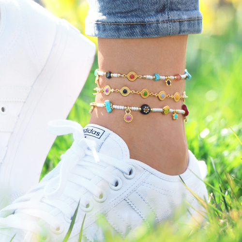 Pronto a realizzare gioielli coloratissimi? Allora mettiti all’opera con le perline, i ciondoli e i distanziatori di metallo DQ! Con questi fantastici articoli potrai realizzare i bracciali, le collane e le cavigliere più vivaci in assoluto. Per esempio, potresti realizzare una collana unendo tra di loro i distanziatori di metallo DQ utilizzando degli anellini apribili. Fissa un moschettone a un’allungatrice a entrambi lati ed ecco fatto! Il tuo gioiello è pronto! Poi crea cavigliere e bracciali coloratissimi. Abbina le perline e i ciondoli di metallo DQ con le perline Miyuki, le pietre naturali chips e le perline Millefiori. Infila tutti gli articoli sulla coda di topo e chiudi con un nodo piano. Appendi delle nappine colorate all’estremità del filo per completare il gioiello! Ora tocca a te, buon divertimento!