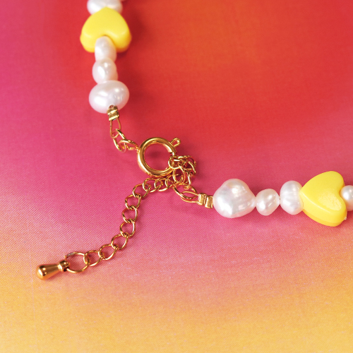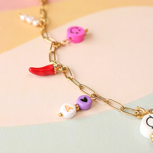 • Perline alfabeto in acrilico con disegno cuoricini multicolore - bianco