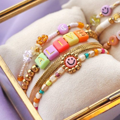 Con le perline alfabeto puoi creare un’infinità di combinazioni! Usa vari materiali infilaperle, come il filo elastico, di nylon o a coda di topo. Scegli le tue perline alfabeto e combinale con le perline con simboli per un messaggio speciale. Le perline alfabeto sono perfette in combinazione con piccole perline rocailles o perline rocailles Preciosa, ma anche con perle naturali come perline di conchiglia o perle d'acqua dolce.