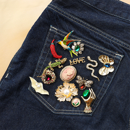 • Broches mano oro-verde-multicolore