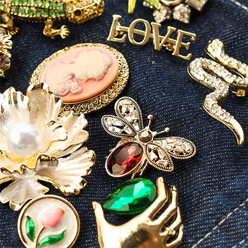 Broches cocodrillo oro-verde-nero