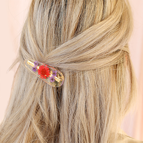 Accessori fermaglio a scatto con fiori secchi rosso viola-oro