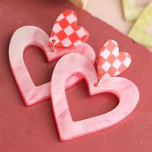 Pendenti in resina cuore rosa magenta-nero