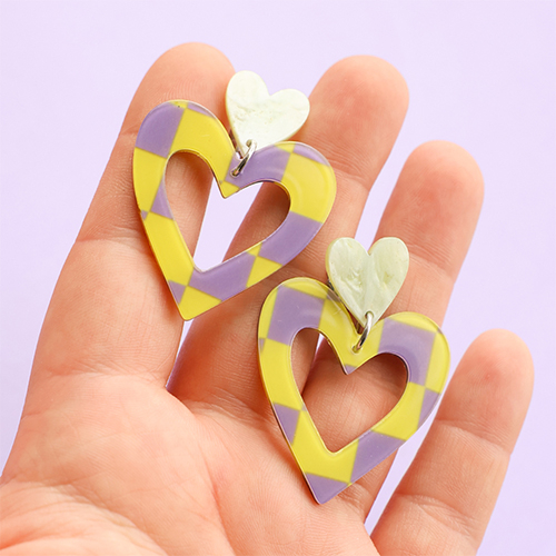 Pendenti in resina cuore viola-verde lime