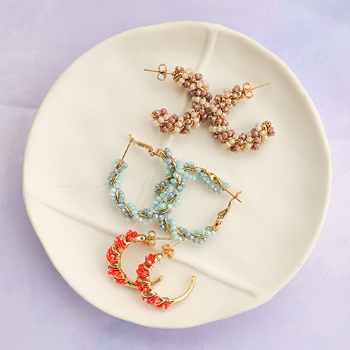 Orecchini alla moda perline spirale multicolore-oro