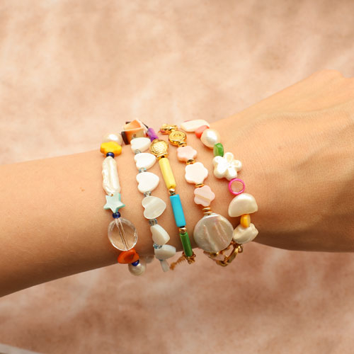 Scopri la nostra nuova collezione di perline di conchiglia, disponibili in colori vivaci e calmi. Queste bellissime perline portano colore e gioia alla tua collezione di gioielli. Combina le perline con chips di conchiglia, ciondoli di strass e perline di ceramica per bellissimi braccialetti, o combinare con portachiavi DQ e filo coda di topo per cordoncino per telefono alla moda.
