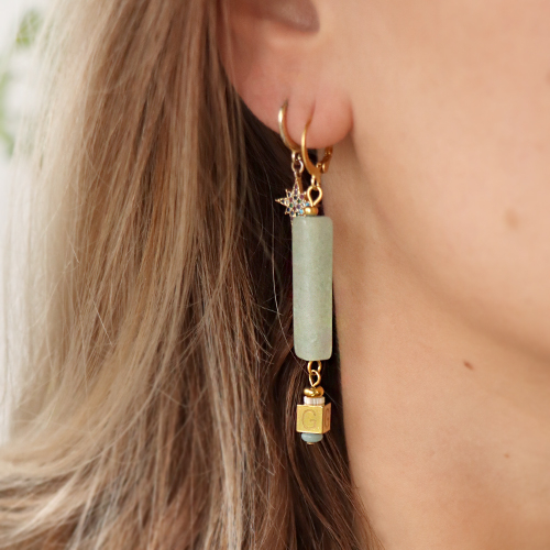 • Perline in pietra naturale Quarzo Avventurina oblungo verde giada