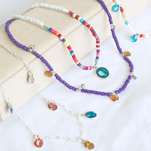 Cerchi idee da cui trarre ispirazione per realizzare collane corte e lunghe di tendenza da indossare tutte insieme? Dai subito un’occhiata a questa collezione di ciondoli di metallo DQ con resina epossidica. Realizza diverse collane infilando, ad esempio, perline rocailles di tutti i colori e appendendo al centro un ciondolo su un anellino apribile. Puoi anche infilare più ciondoli su tutta la collana. Se utilizzi mini perline, ti consigliamo di adoperare un tappetino per perline. Per infilare le perline velocemente, puoi utilizzare anche uno spin-n-bead. Utilizza il filo di nylon e un salvafilo di metallo in modo da proteggerlo prima di fissare la chiusura. Ed ecco pronta la collana di catena a rolò con ciondoli che risalteranno in tutto il loro splendore. Completa le collane con una bella chiusura e fissa un’allungatrice in modo da regolare la lunghezza.