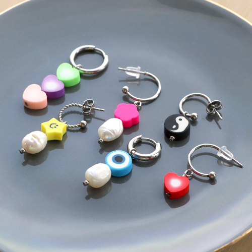 Questa nuova e vivace collezione di perline di polimero ti farà subito venir voglia di realizzare allegri set di gioielli. Il motivo? Perché si abbinano facilmente a qualsiasi altro tipo di perline. Ad esempio, potresti realizzare una collana con la catena a rolò e appendere la perlina come ciondolo. Crea un ciondolo con chiodini a pallina e perline a polimero poi fissalo al bracciale di catena a rolò utilizzando un paio di pinze a punta tonda. Varia i ciondoli di polimero con altri ciondoli per ottenere un effetto vivace. Puoi abbinare i colori allegri delle perline di polimero a perline più piccole in modo da creare semplici bracciali o cavigliere in un’infinità di varianti! Fissa la perlina yin yang di tendenza a un orecchino. Potrai creare una favolosa collezione di gioielli abbinando le perline di polimero alle perle d’acqua dolce, alle perline cilindriche o in acciaio inox.