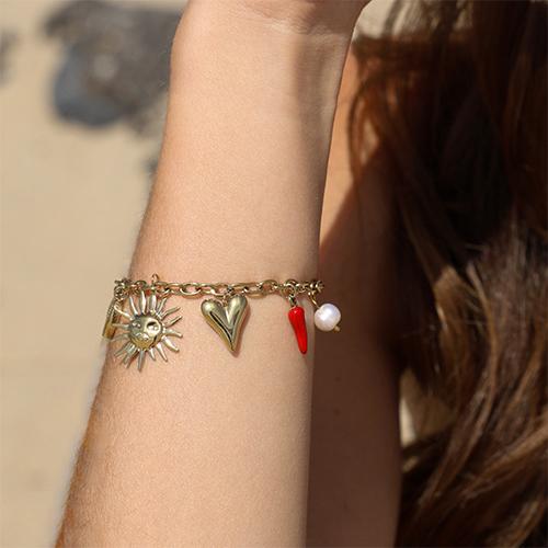 • Bracciali in acciaio inossidabile con ciondolo estate oro-rosso-bianco