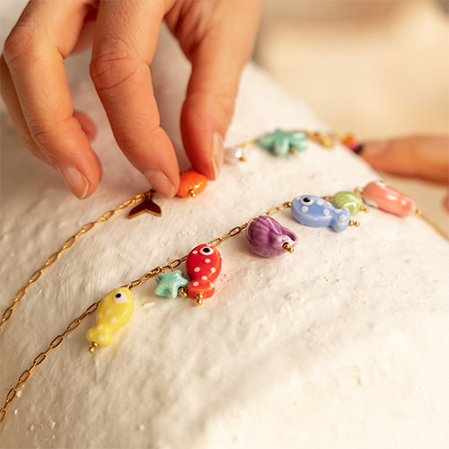 • Collane in acciaio inossidabile con ciondolo vita marina oro-multicolore
